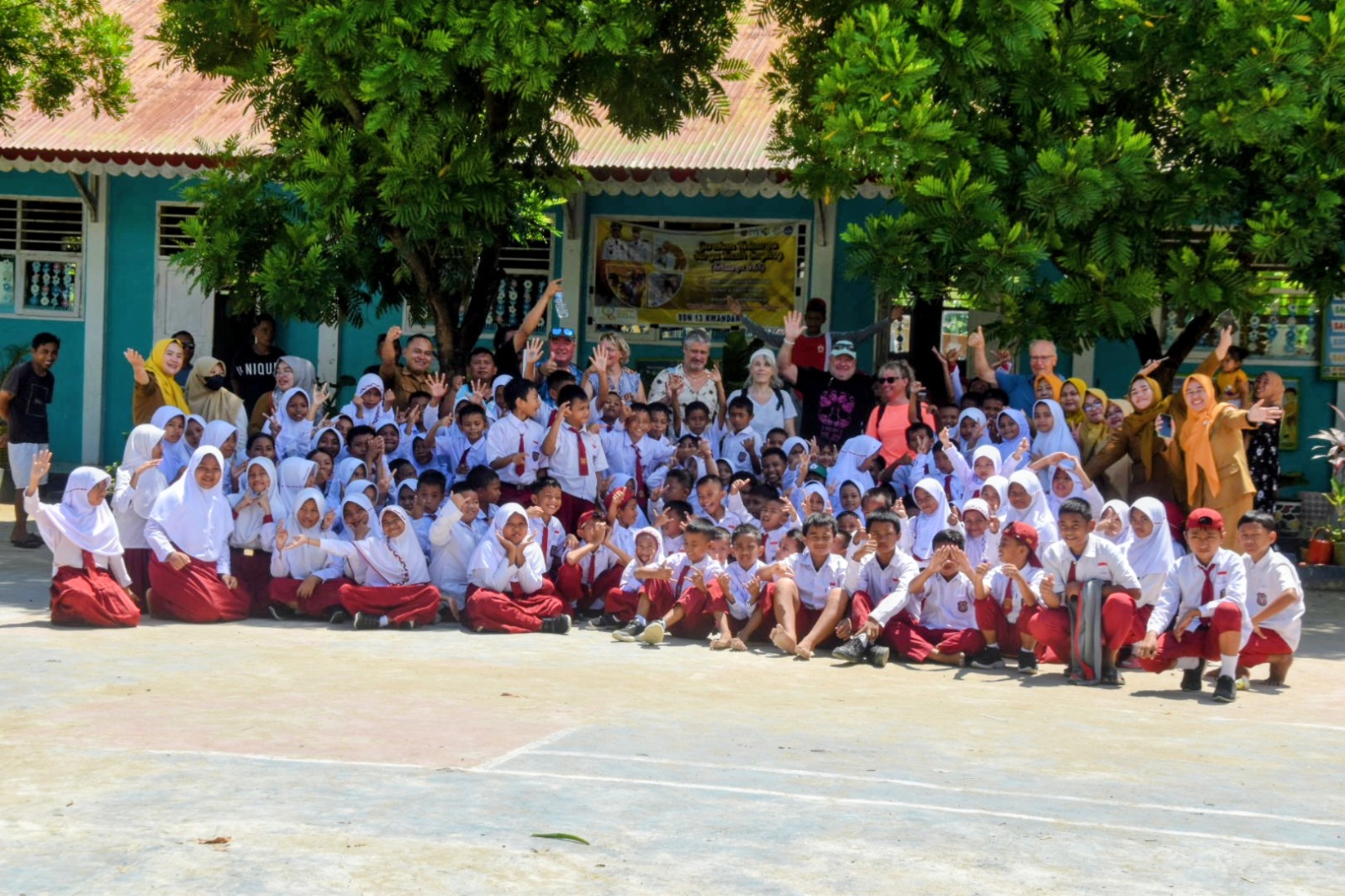 “Selain mempromosikan keindahan Pulau Saronde, hari ini kami mengajak tujuh orang tamu dari Swiss untuk berkunjung ke SDN 13 Kwandang. Setibanya di sekolah, para turis disambut meriah oleh para siswa,” ujar Lando, Senin (03/11/2025).