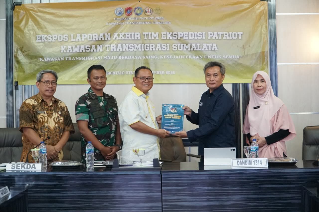 Publishare.id- Pemerintah Kabupaten Gorontalo Utara resmi menggelar kegiatan Laporan Akhir Ekspedisi Patriot Kawasan Sumalata Tahun 2025 yang berlangsung di Ruang Rapat Tinepo, Jumat (05/12/2025). Agenda strategis ini dibuka langsung oleh Bupati Gorontalo Utara, Thariq Modanggu.