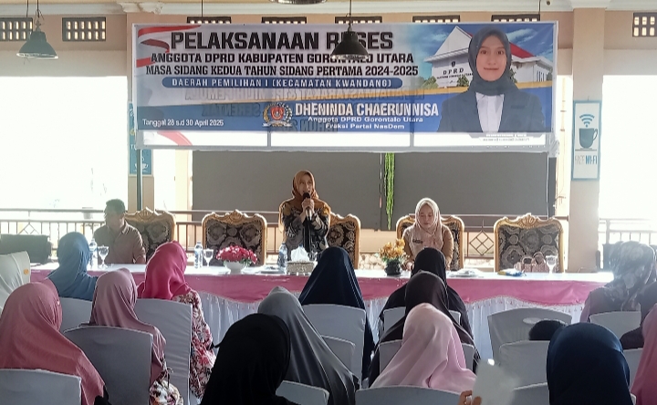 Publishare.id- Ketua Komisi 3 DPRD Gorontalo Utara (Gorut), Dheninda Chaerunnisa, menggelar pelaksanaan masa reses Anggota DPRD Gorut masa sidang pertama, tahun sidang pertama tahun 2024-2025 yang digelar di desa Titidu, Kecamatan Kwandang, Selasa (29/4/2025).