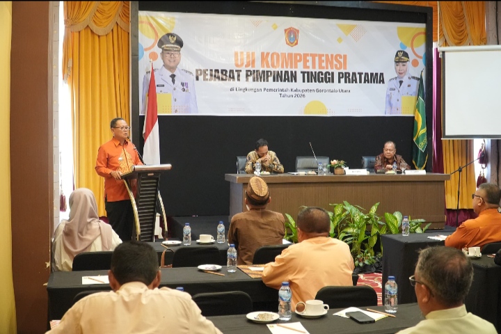 Publishare.id- Bupati Gorontalo Utara, Thariq Modanggu, menegaskan komitmennya terhadap reformasi birokrasi dengan membuka langsung pelaksanaan Uji Kompetensi (Job Fit) dan evaluasi kinerja pejabat tinggi pratama. Kegiatan tersebut berlangsung di Grand Q Hotel, Kamis (16/4/2026).