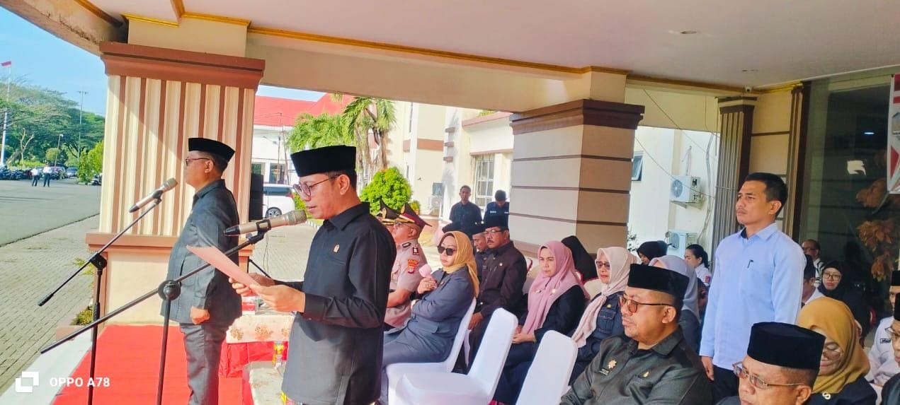 Ketua DPRD Gorut, Deddy Dunggio saat membacakan Ikrar pada peringatan hari kesaktian Pancasila, Rabu (1/10/2025).
