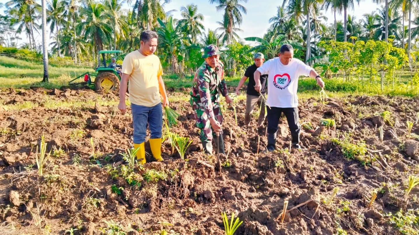 Seperti halnya yang dilakukan Babinsa Koramil 1314-01/Kwandang, Serma Ruslang dan Sertu Darwin Djumti, keduanya memberikan kontribusi nyata dengan menghadiri kegiatan penanaman bibit rumput Odot pakan hewan G2-10 dikawasan penghijauan mini ranch, yang dipimpin langsung oleh Bupati Gorontalo Utara Bapak Thariq Modanggu, S.Ag., M. Pd.I bertempat di Desa Molantadu Kec. Tomilito Kab. Gorontalo Utara, Senin (15/09/2025).