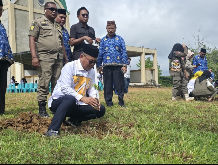 Publishare.id- Bupati Gorontalo Utara, Thariq Modanggu, bersama Wakil Bupati Nurjanah Hasan Yusup, menghadiri sekaligus mengikuti kegiatan Gerakan Agro Mopomulo yang dirangkaikan dengan Penandatanganan Nota Kesepahaman (MoU) antara Pemerintah Kabupaten Gorontalo Utara dan Kementerian Agama Kabupaten Gorontalo Utara, serta Pencanangan Penanaman Tanaman Tahunan dalam rangka Hari Kementerian Agama (HKN) Tahun 2025 di halaman Masjid Jabal IQRA, Rabu (17/12/2025).