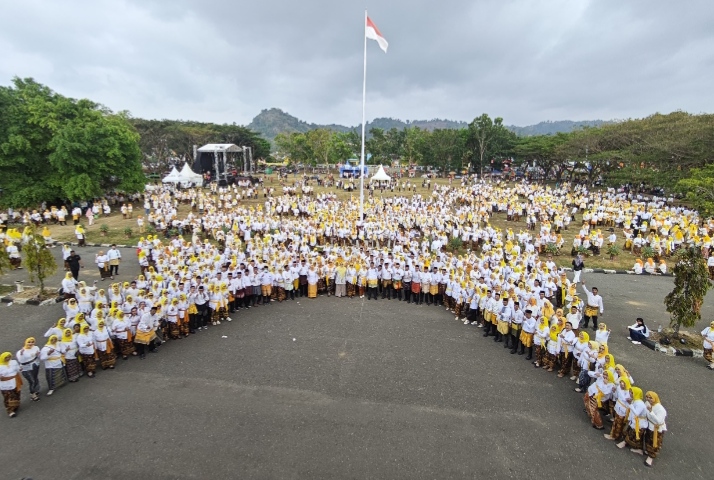 Ribuan peserta yang memeriahkan tarian dana dana kolosal di halaman kantor Bupati Gorontalo Utara, Jumat (24/4/2026) foto ( Arifin )