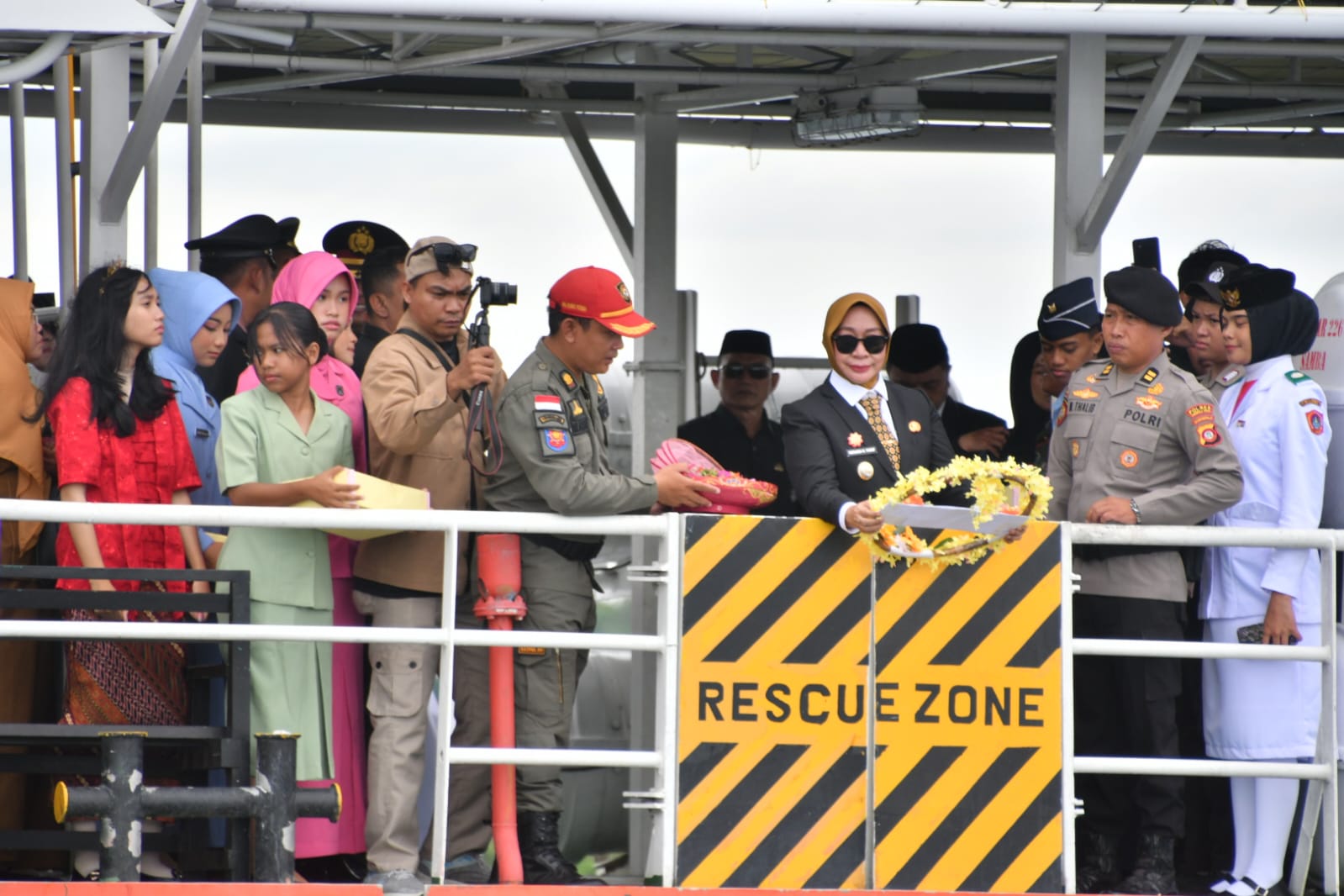 Publishare.id-Wakil Bupati Gorontalo Utara, Nurdjanah Hasan Yusup, bertindak sebagai Inspektur Upacara sekaligus memimpin upacara Larung bunga pada Peringatan Hari Pahlawan Nasional Tahun 2025 yang digelar di Pelabuhan Kwandang, Senin (10/11/2025).